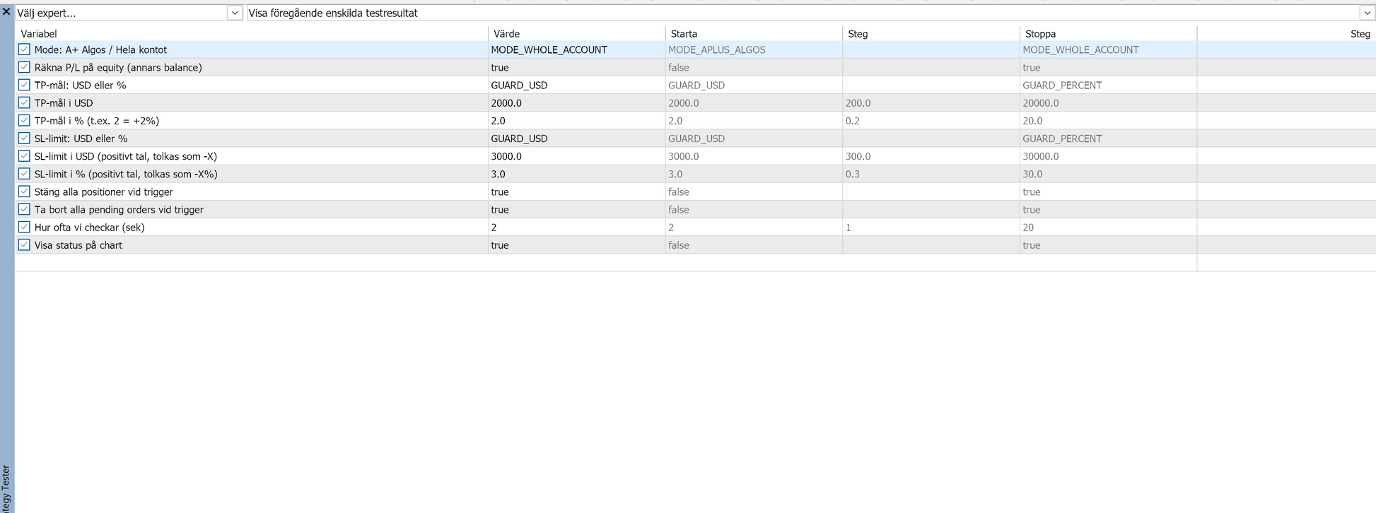Trött pĂ„ att en bra dag förvandlas till âen sista tradeâŠâ? Eller att flera algos tillsammans rĂ„kar dra ivĂ€g risken? Account Guard Ă€r vĂ„r kontoskyddare som sĂ€tter tydliga ramar för hela din tradingdag.